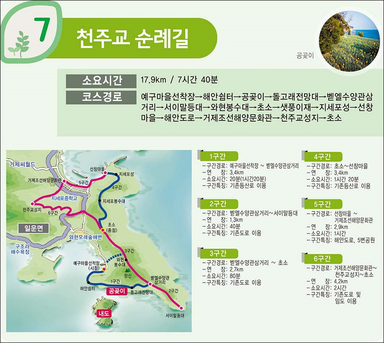 '천주교 순례길'은 거제시 일운면 예구마을 선착장에서 시작해 거제 8경 중 하나로 꼽히는 공곶이를 지나