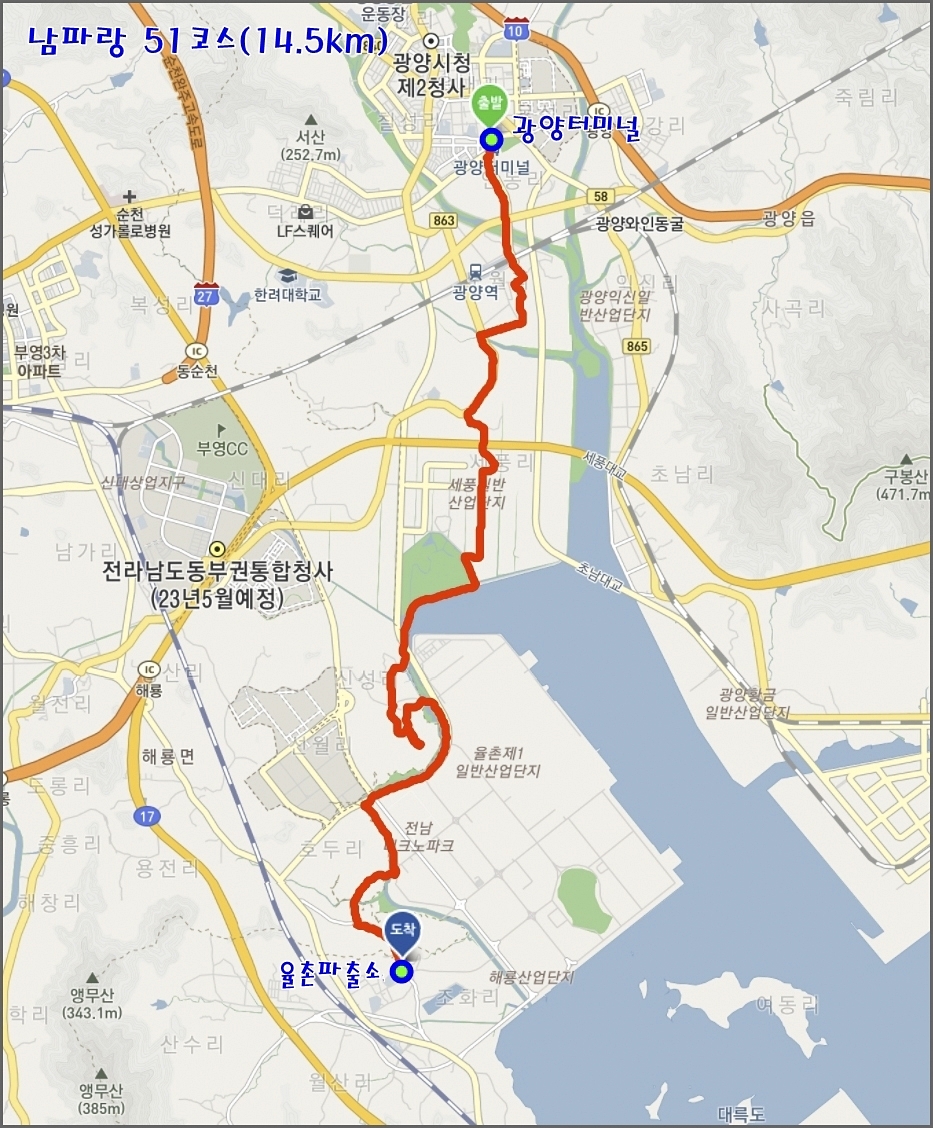 * 남파랑길 광양 51코스(광양터미널~율촌파출소)