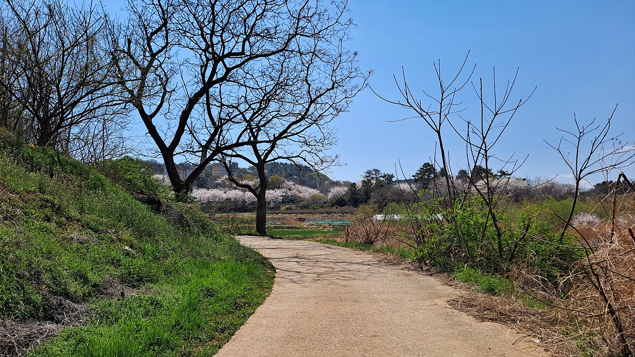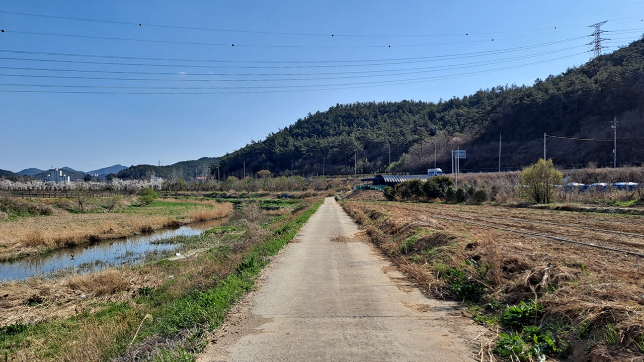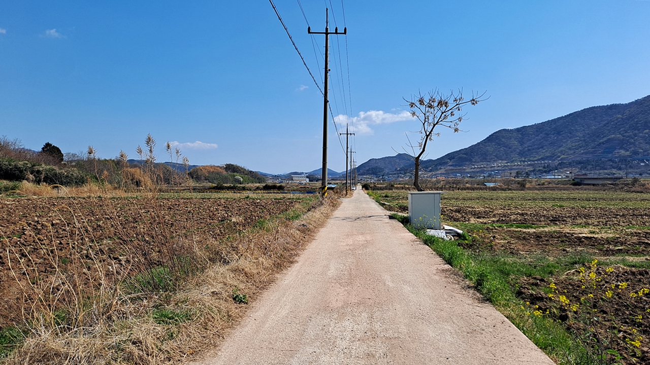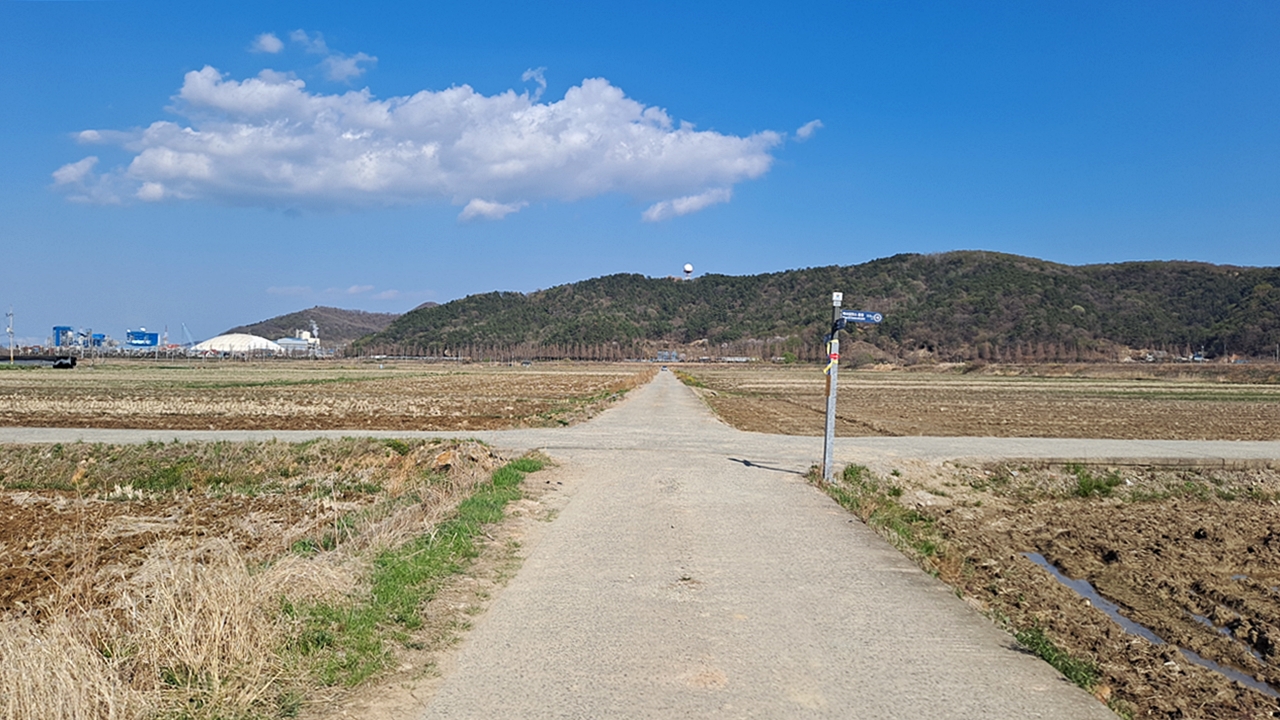 코스이며 걷는 동안 농촌의 삶을 엿 볼 수 있으며 길 주변에 식재된 농작물을 보고 배울 수 있고 확 트인 벌판과