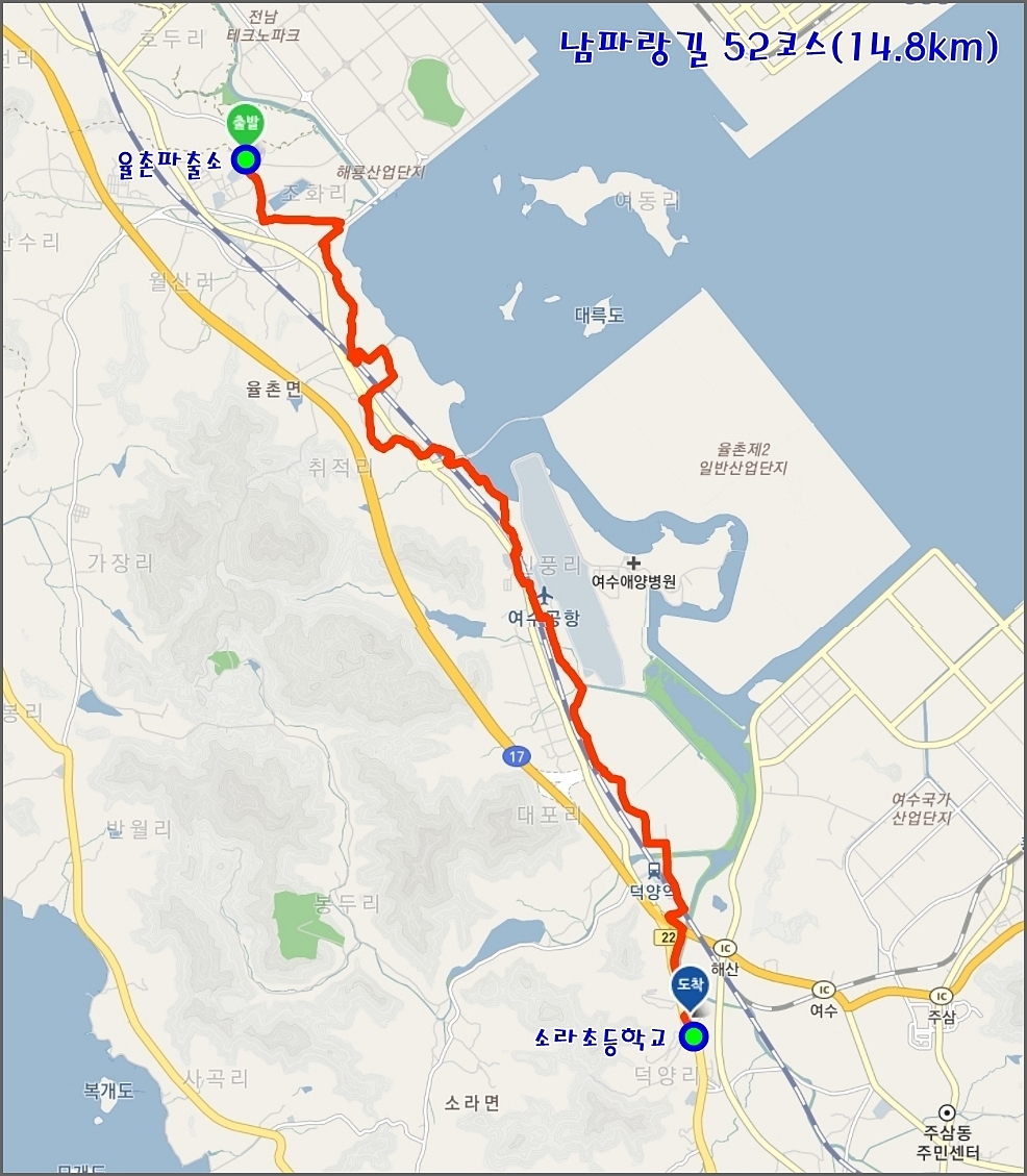 * 남파랑길 여수 52코스(율촌파출소~소라초등학교)