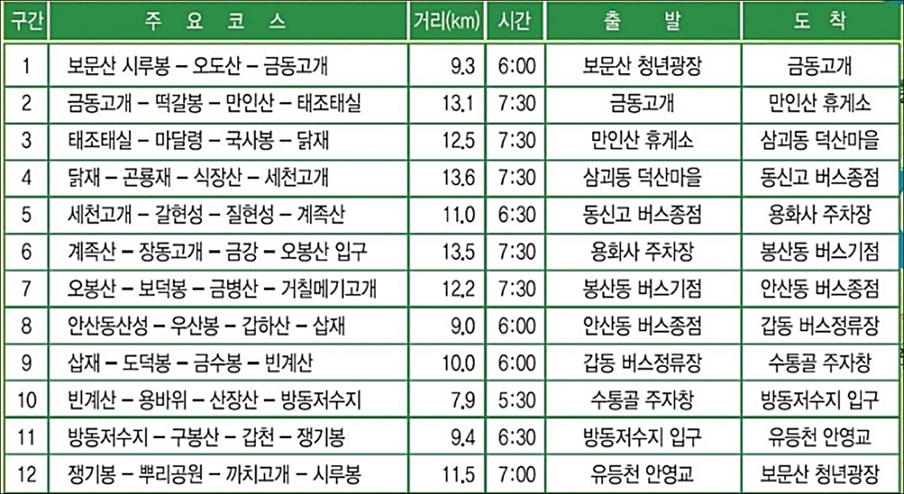 대전둘레산길 : https://www.daejeon.go.kr/tou/TouContentsHtmlView.do?menuSeq=4912