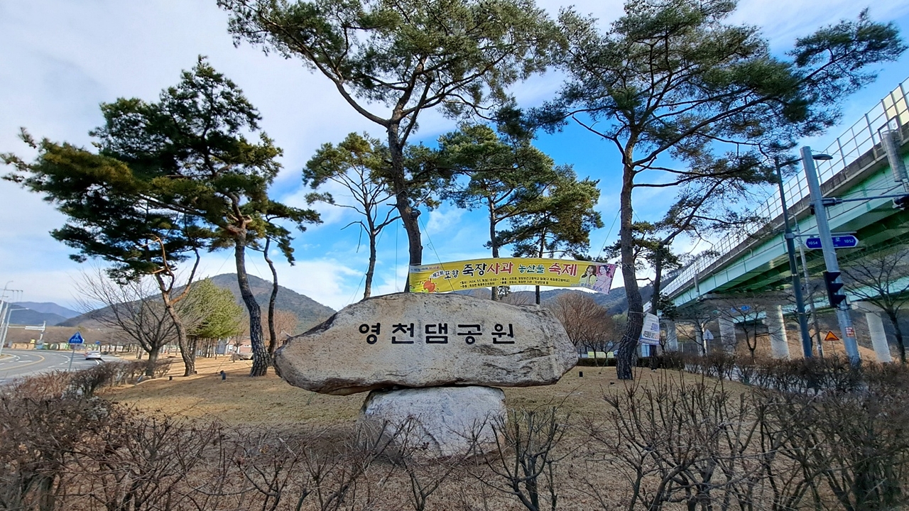 영천댐하류공원은 경북 영천시 임고면에 자리 잡고 있다. 높이 42m, 제방 길이 300m의 영천댐이 인접해 있다. 공원에는 영천댐공원 오토캠핑장, 물놀이장인 영천수변테마파크 등이 갖춰져 있다. 봄이 되면 공원 주변에 벚꽃이 만발해 장관을 이룬다..
