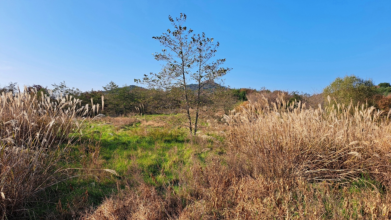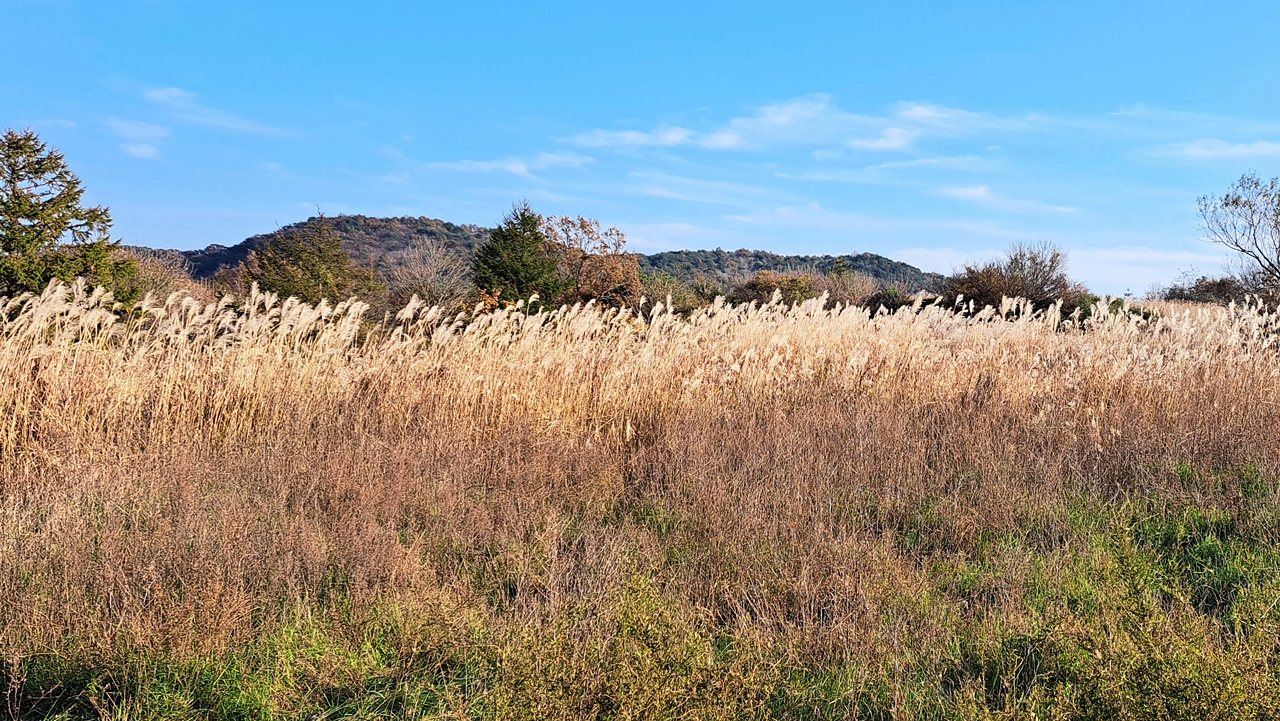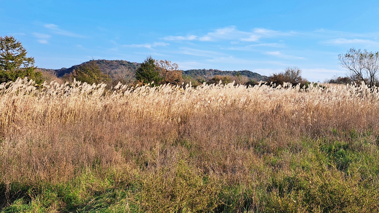청산벌은 해발 700m에 있는 9만 평 규모의 고산분지는 새하얀 억새군락이 만추의 정취를 느끼게 한다.