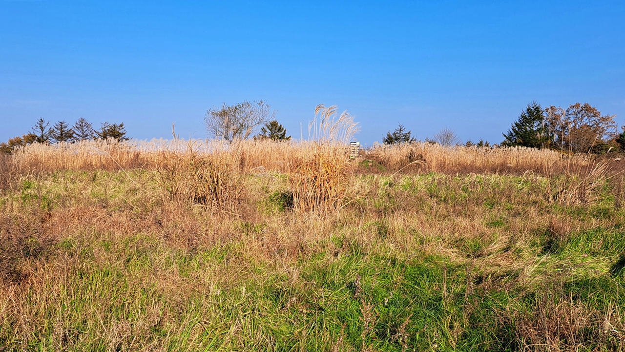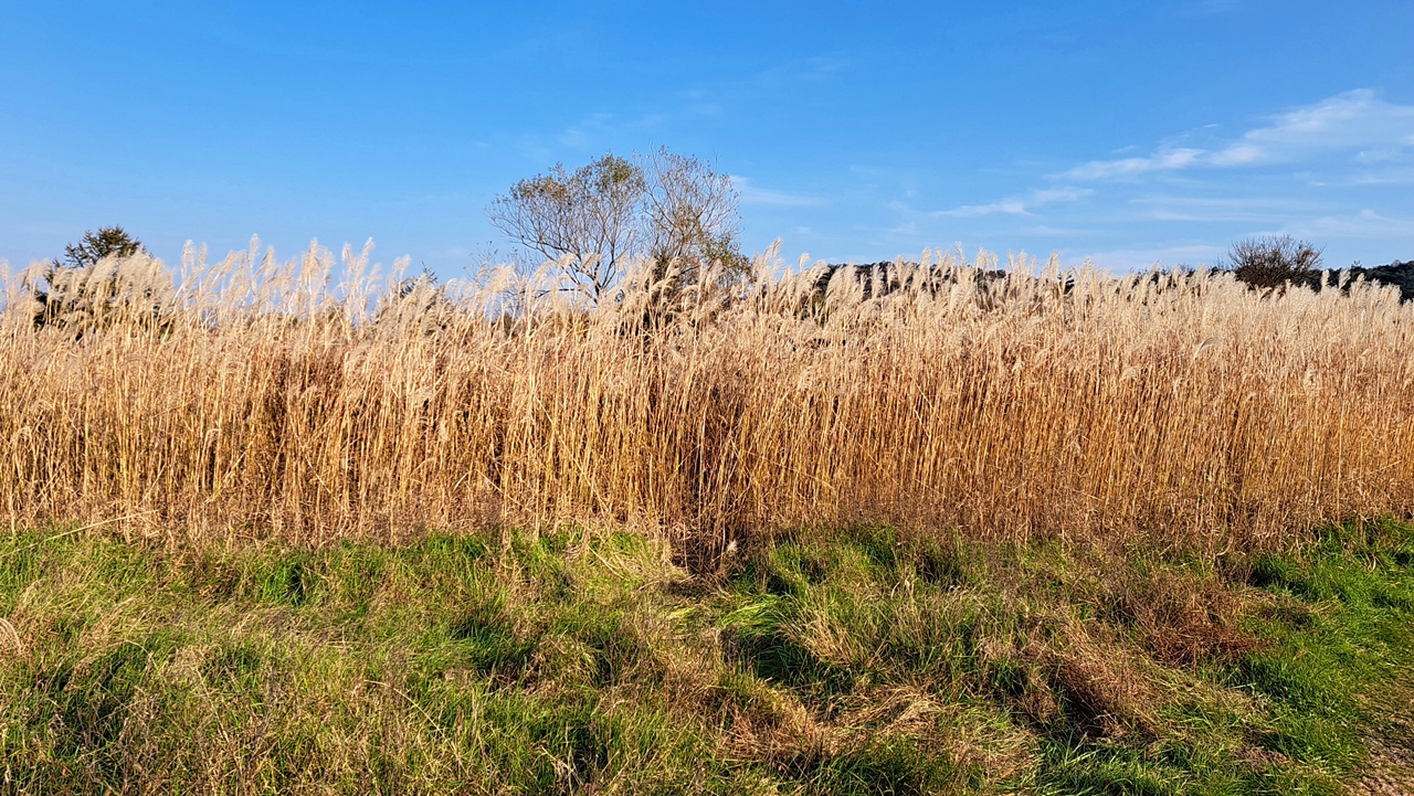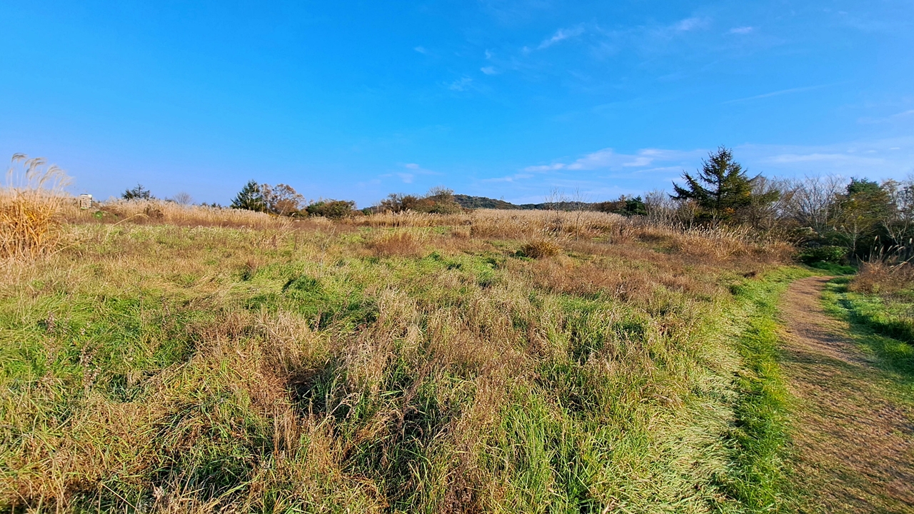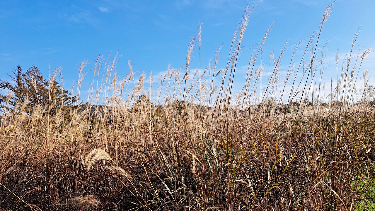 청산벌은 해발 700m에 있는 9만 평 규모의 고산분지는 새하얀 억새군락이 만추의 정취를 느끼게 한다.