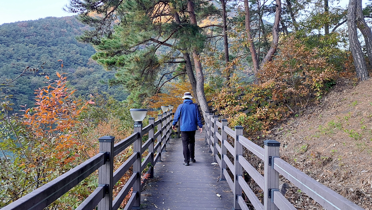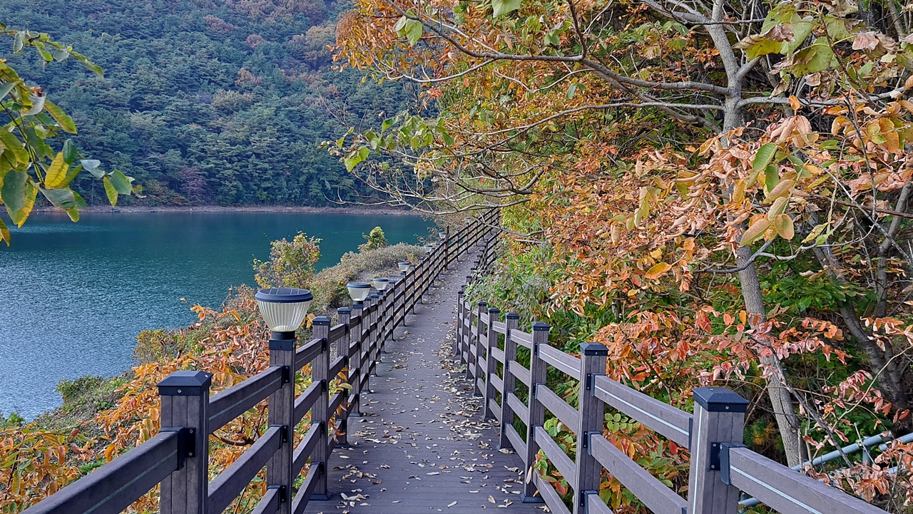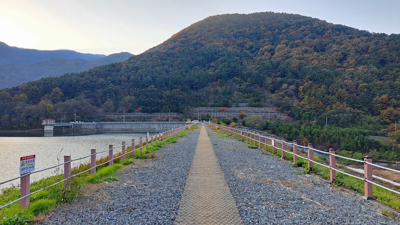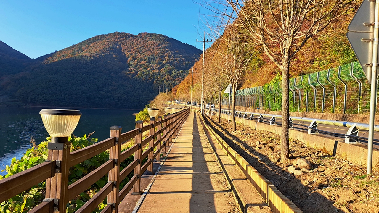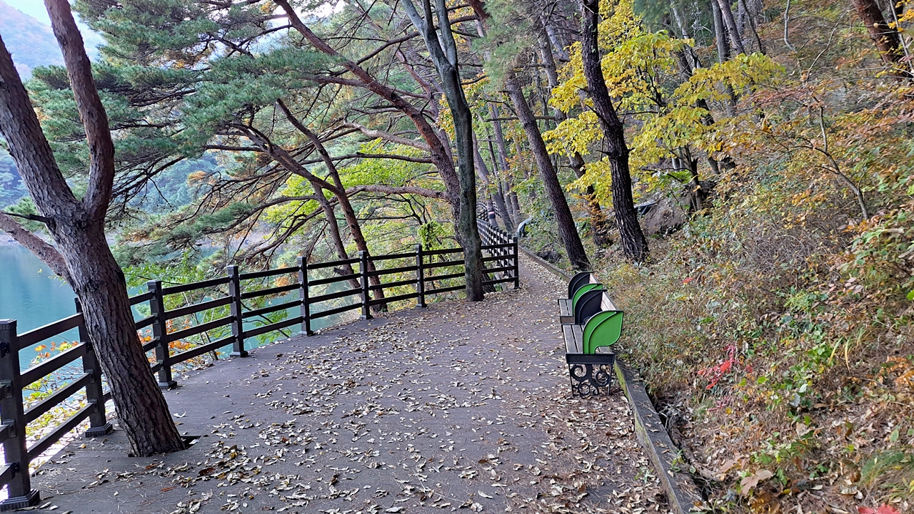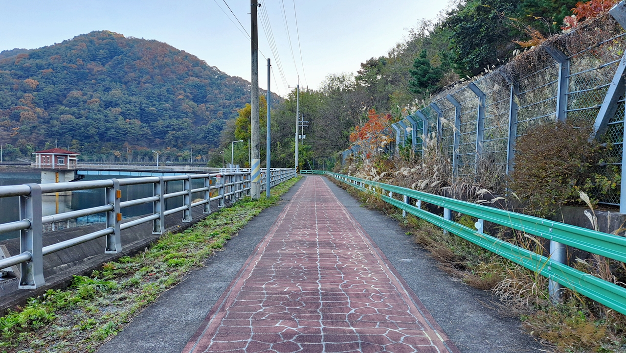 여항산마을 권역단위종합정비사업의 일환으로 저수지 주변에 산책로를 조성하였다.