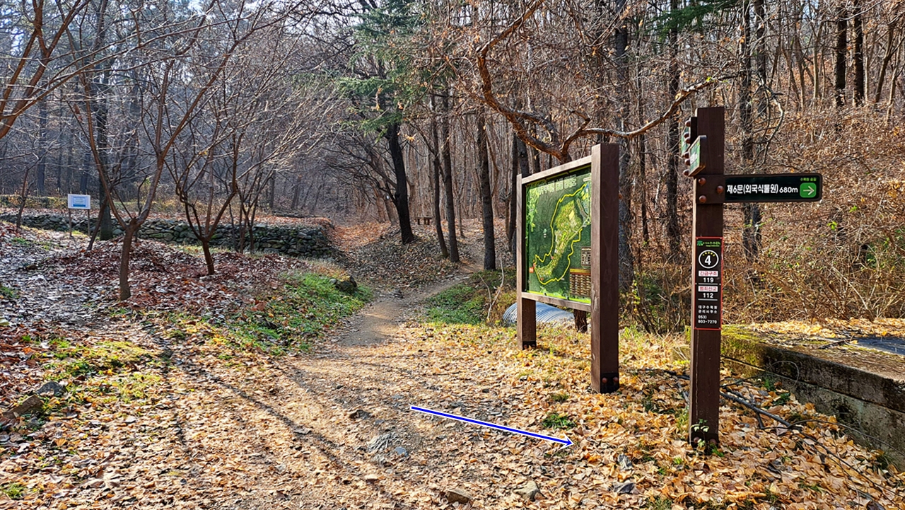 ※ 주차장~수목원 입구~대곡동/한실마을 갈림길~제2문(철쭉원)~제3문(전통정원)~제6문(외국식물원)~소나무 숲길~제8문(약용식물원)~대구수목원~수목원 입구(안내도 기준 4.0km)