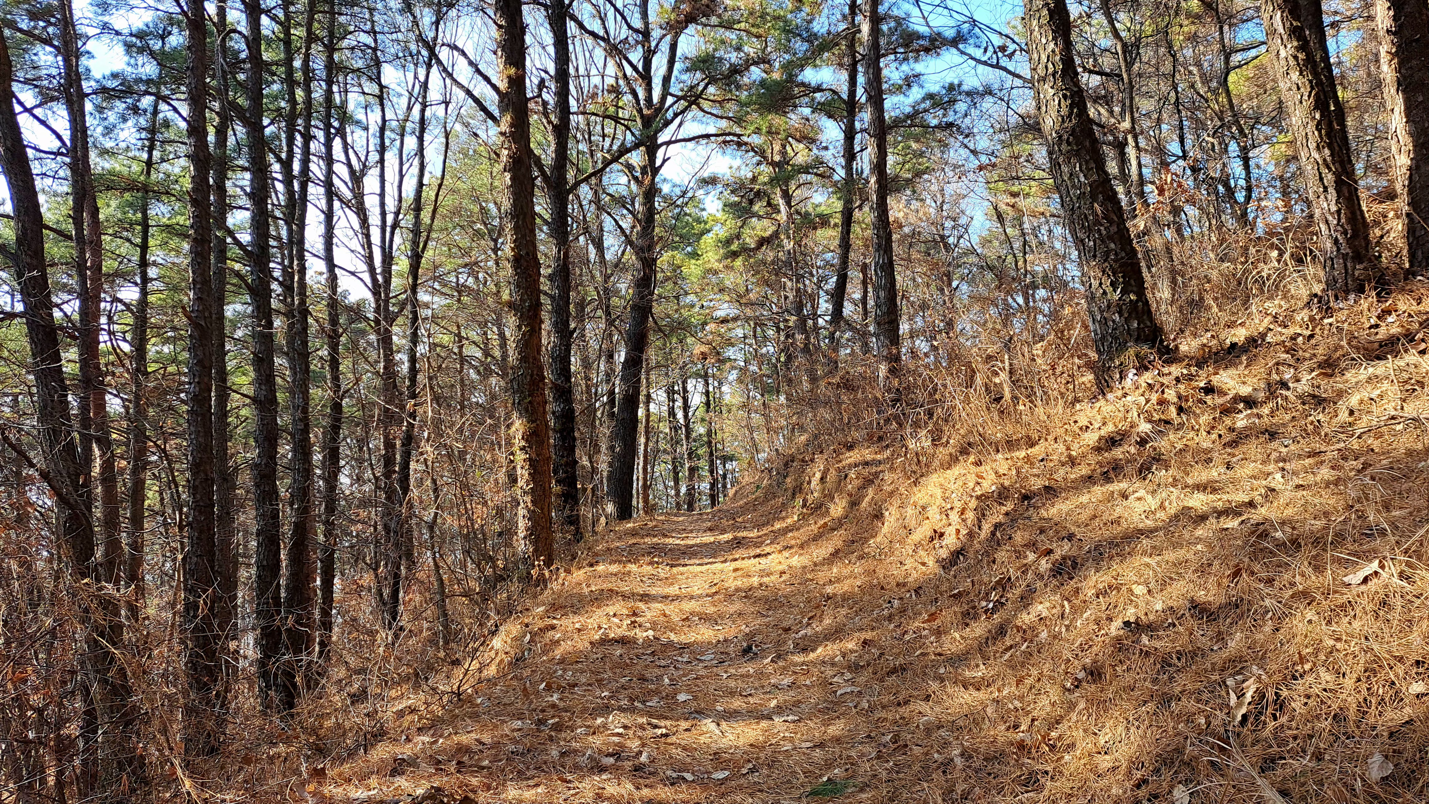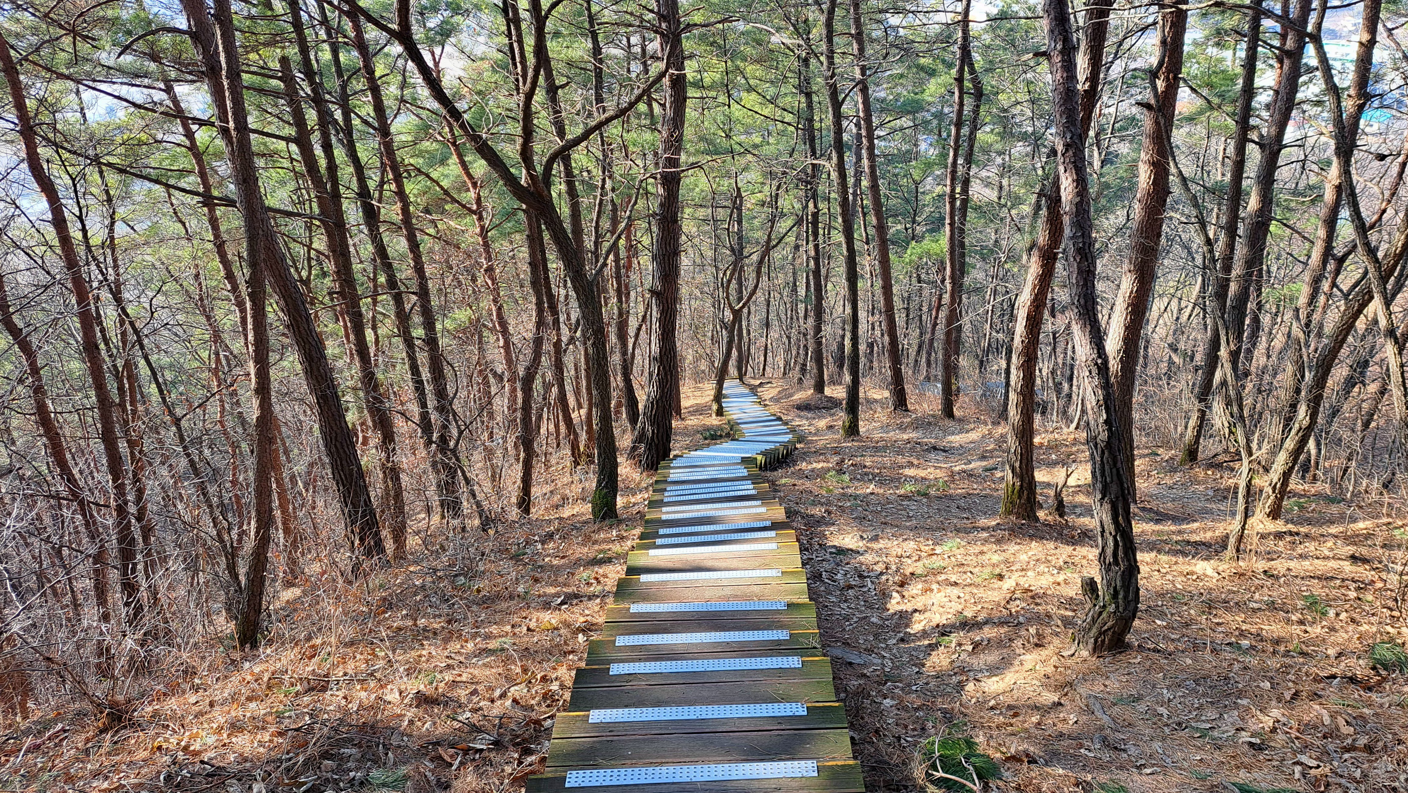 그리고 중검에서 시작하는 1코스는 검암산을 지나 한반도지형전망대에서 군립공원을 조망하고 입곡저수지를 가로 지르는 출렁다리를 거쳐 입곡군립공원 단풍길을 지나 군립공원 주차장까지의 4.25km 코스길이다.