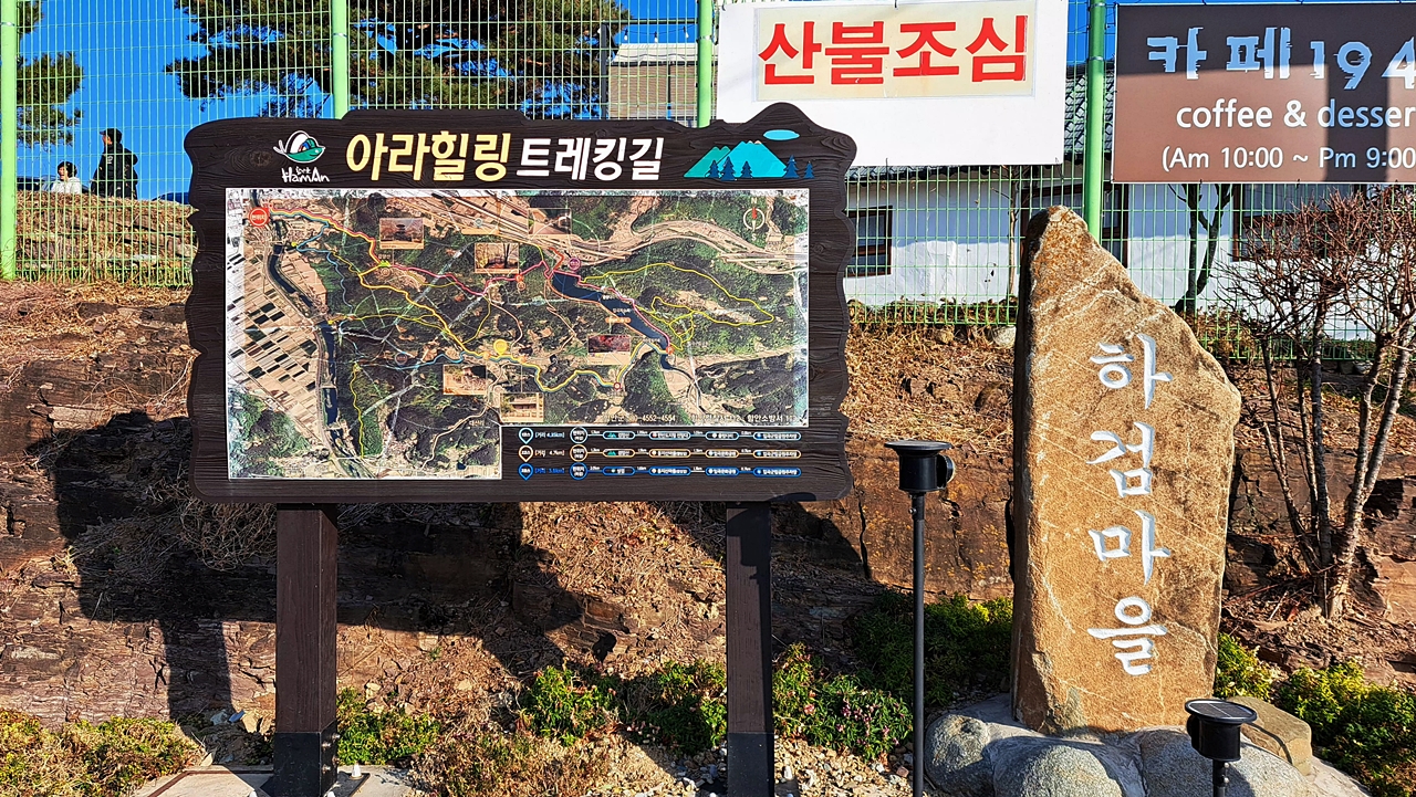 ※ 하검마을회관~목교~체육쉼터~검암산~임도(화장실)~상검마을 갈림길~목교~중검마음/검암생활체육공원~하검마을회관(안내도 기준 약 4.5km)