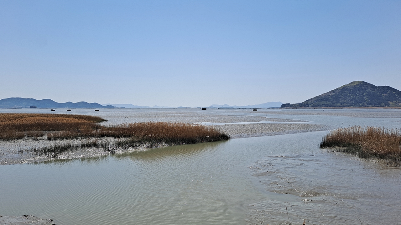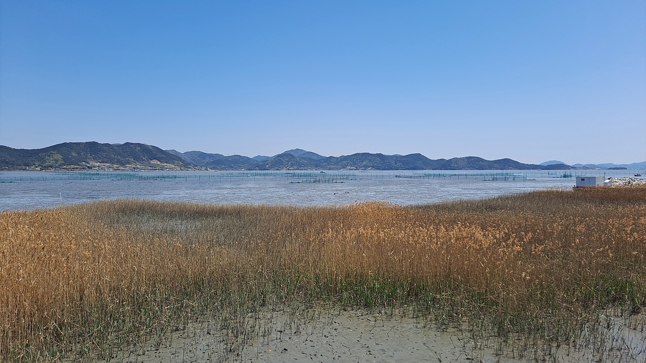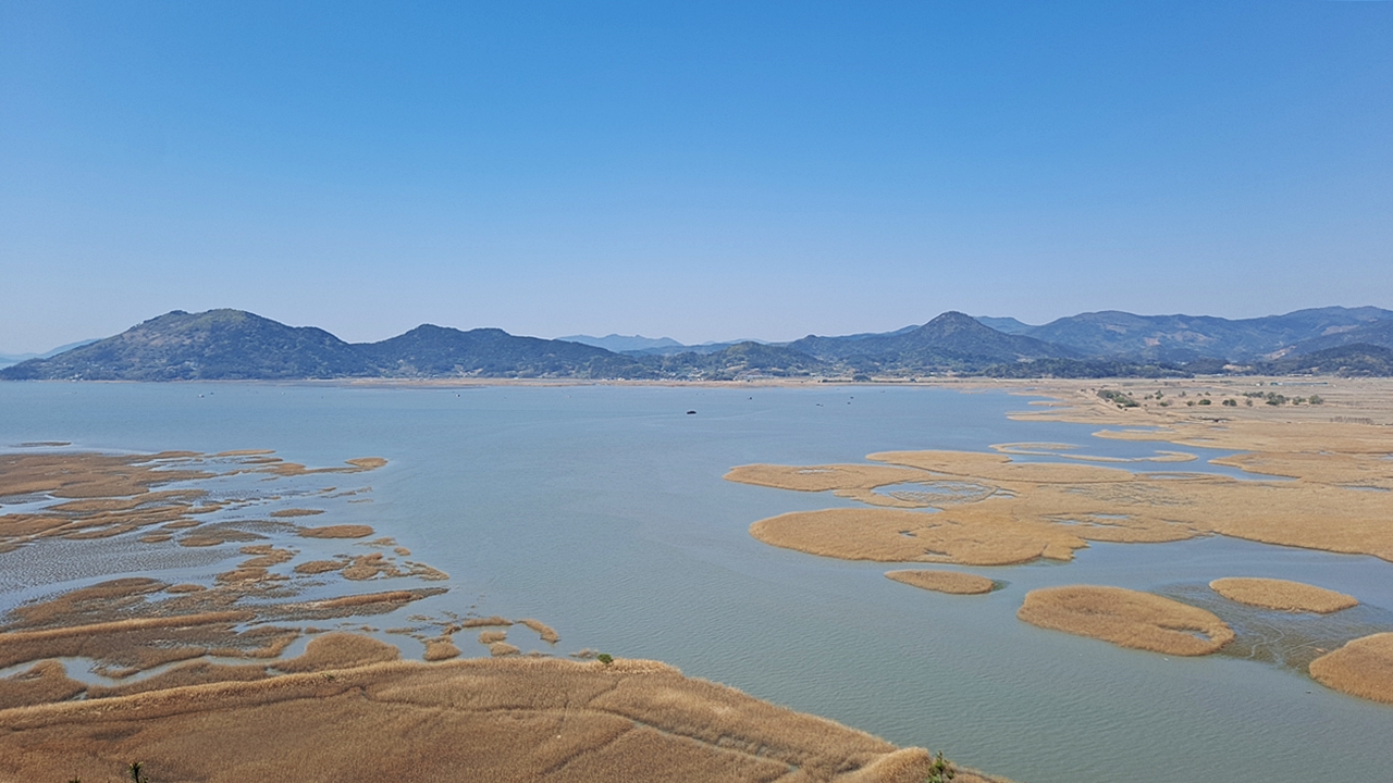남해안 오션뷰 명소 중 하나인 와온해변과 와온 소공원의 일몰, 세계 5대 연안습지인 순천만습지의 갈대밭,