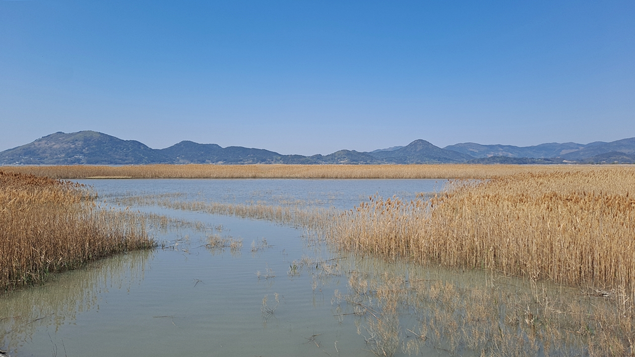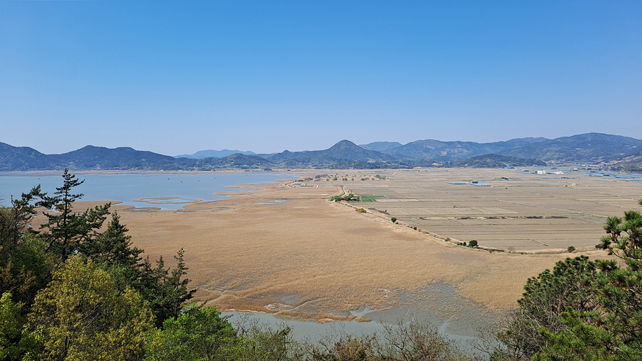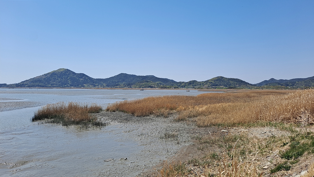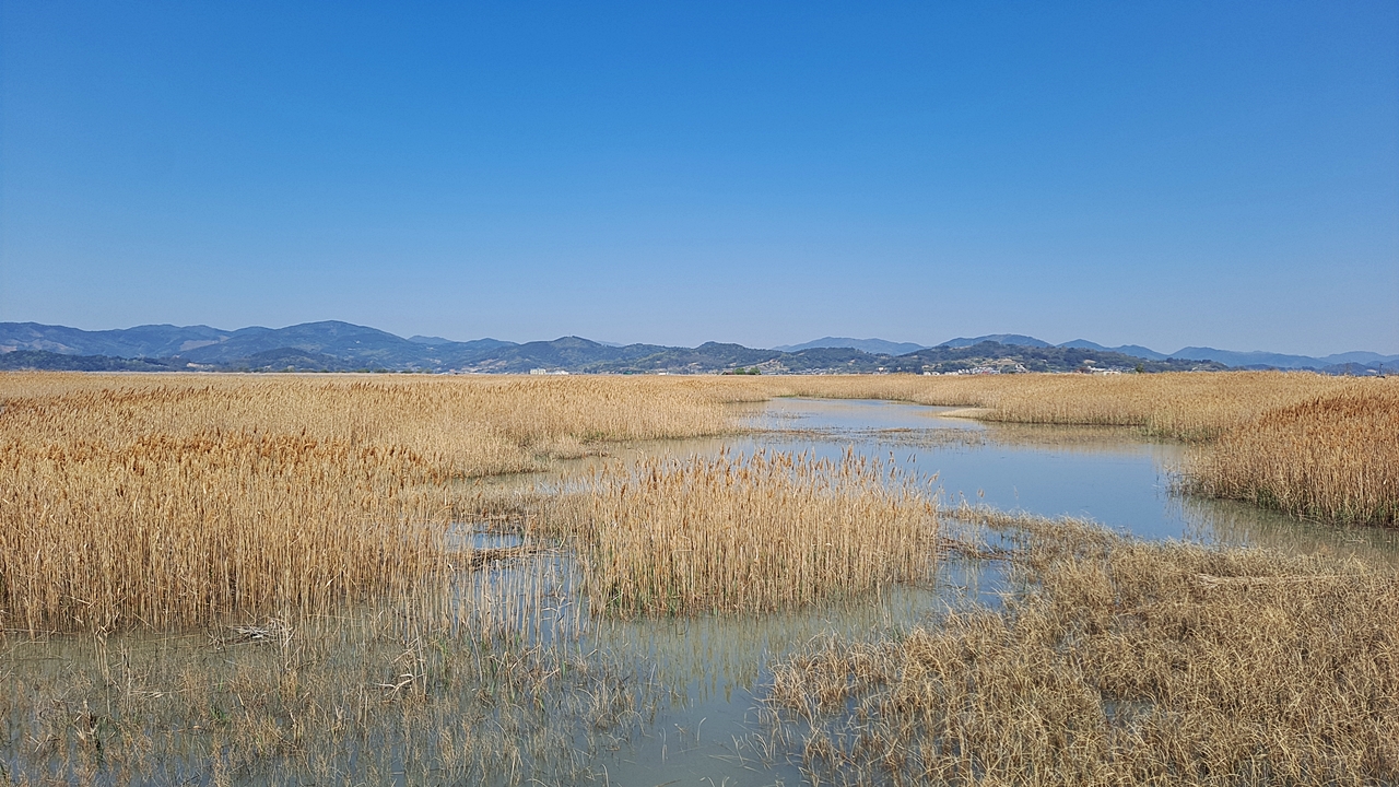 남해안 오션뷰 명소 중 하나인 와온해변과 와온 소공원의 일몰, 세계 5대 연안습지인 순천만습지의 갈대밭,